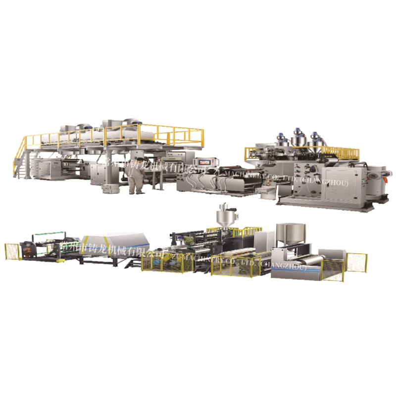 鑄龍ZLX-LM擠出淋膜復(fù)合機(jī)組系列,利用PE/EVA/PP/TPU/POE等熱塑材料的擠出工藝,對基材進(jìn)行單/雙面覆膜或多層復(fù)合,形成具有多種功能的復(fù)合制品。該系列設(shè)備擁有多種模塊化結(jié)構(gòu),通過模塊組合,可以實(shí)現(xiàn)低速、中速、高速、超薄、超高克重淋膜復(fù)合功能,適用淋膜基材涵蓋薄膜、無紡布、珍珠棉、發(fā)泡卷材、紙、紡織品、編織布、針刺布、水刺布、網(wǎng)格布、功能隔膜、金屬箔、鍍鋁膜等。通過單機(jī)、雙機(jī)、多機(jī)以及單層/共擠、預(yù)熱、預(yù)涂、復(fù)合等功能選配,可以滿足食品、外包裝、裝飾品、建材、農(nóng)業(yè)、光電、車船航天功能材料等領(lǐng)域的廣泛需求。